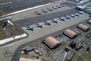 Six members of the 439th Security Forces Squadron deployed to Iraq on Feb. 18. Capt. Shawn Swarz, Master Sgt. Paul Cyr, Tech. Sgt. Scott Taylor, Tech. Sgt. Ronnie Briere, Staff Sgt. Eric Marjault and Senior Airman Arjel Falcon, left as part of a 13-man squad of security forces Reservists tasked with