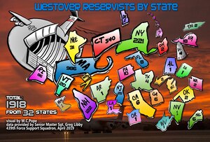 Westover Reservists come from 32 states, 986 are from Massachusetts, 340 from Connecticut, 221 from New York, and 86 from Rhode Island. And the rest of the 1918 Reservists come from a range of states including Hawaii being the farthest distance.Last year there were 34 states represented.