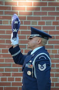 Westover Honor Guard honored the family of a Vietnam combat medic July 26 ata ceremony on base. TSgt. Raphael Marrero prepares the American flag topresent to the deceased veteran's daughter and family. The base honor guardcovers a massive territory in New England and New York. Last year, the